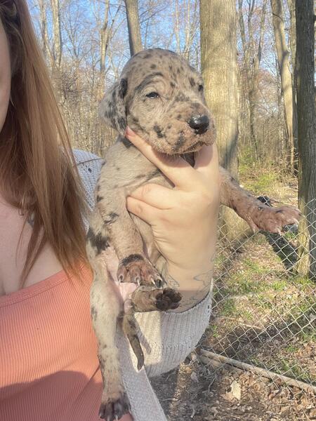 message jordangraham about this ad Great Dane puppies available April 26th 2024. Unregistered puppies. 7 available. All puppies will come with health record of shots, wormings, and puppy care packages! Any questions please feel free to send me a message or text me! If you would like to hold a puppy of your choice you can place a deposit with a contract in place! Five13- Four30-One910 |