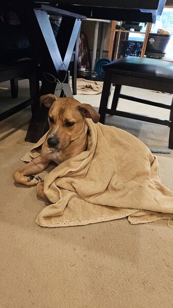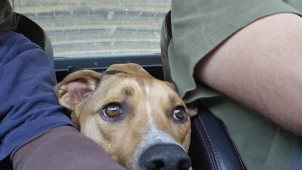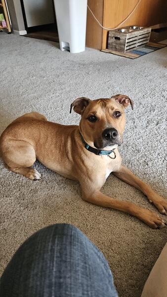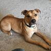 message caris about this ad We have about a 2 year old pit mix dog that we are re-homing. He is medium sized (45 lbs neutered and has his rabies shot. He is potty and crate trained and knows basic commands. He is super loving and friendly. |