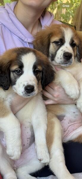 message klsln279 about this ad Two Available. Female. Born 7/4/2025. Up to date on shots. Just found out that the person were subleasing from isnt in compliance with anything, and were losing our home. Need to find a home for these girls. Either together or separate. Cleo looks more Saint Bernard, with lighter coloring, and a more squished face. She has a more Saint Bernard personality as well. Chaos looks like a Saint Bernard, but has the longer lab face, and darker ears. She is more spunky, and more of an alpha. Theyve been around kids and other dogs. Currently on Purine One large breed puppy formula. Will come with food sample, collar, leash, shot records, tie out, and some treats. Looking to rehome asap. $400 Can meet anywhere from Grand Haven to Saugatuck, Michigan. |