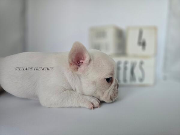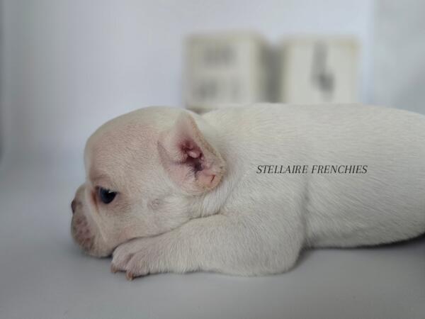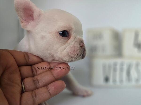 message clckennels about this ad Contact us anytime (909)824-4614 Follow us on IG @stellairefrenchbulldogs We are thrilled to announce the arrival of a stunning litter of puppies born on April 22, 2025! Our beautiful Luna (Cream) was bred to a handsome Black & Tan sire. They have blessed us with 8 healthy, beautiful puppies4 adorable girls and 4 charming boys. About Him: Introducing this stunning male French Bulldog, a beautiful example of breed standard type and quality. His coat is a rare, immaculate whitesmooth, short, and fine in texturehighlighting the refined elegance expected of the breed. True to the AKC French Bulldog Standard, he displays: A compact, muscular build with a broad chest and well-developed shoulders. A square head with a broad, flat skull, a well-defined stop, and an expressive, wrinkled face. Bat ears that are upright, rounded at the top, and correctly set to give him that classic Frenchie charm. A short nose with open nostrils. Soft, light blue eyes that exude intelligence and a gentle, curious demeanor. A naturally short tail, carried low and tapering to a fine point. His temperament is already shining through: calm, affectionate, and eager to engage. Hes being raised in a clean, loving environment, and socialized from an early age to ensure he matures into a confident, well-balanced companion. This boy promises to be not only a head-turner but also a wonderful addition to any loving home or breeding program adhering to ethical, health-conscious practices. Blues eyes may change Our puppies are raised with the highest standards using Puppy Culture, Avidog, and BABS programs to ensure they are well-socialized and confident companions. Shipping WORLDWIDE (Buyers expense) He will be ready at 8weeks old June 17th. If your interested feel free to reach out anytime. He will come with LIMITED AKC papers, Vet Checks, up to date vaccines, deworming, health Guarantee, and much more. message clckennels about this ad |