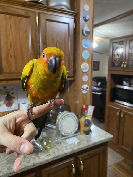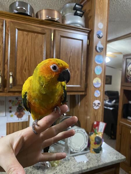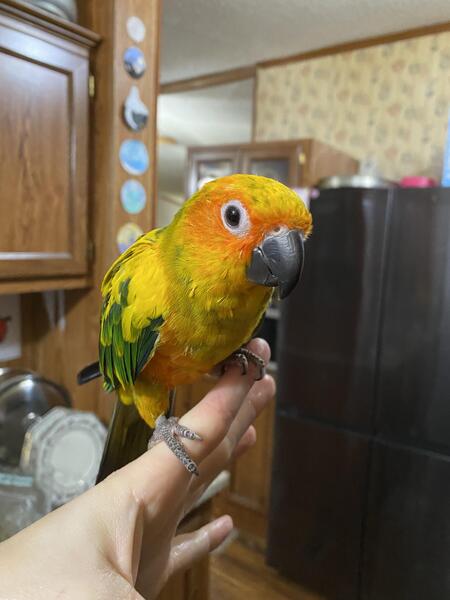 message otmane1976 about this ad I have two Sun Conure babies for sale different parents. Older one already weaned and ready to go to a new home about three months old. The young one still being hand fed and should be ready in about four weeks. |