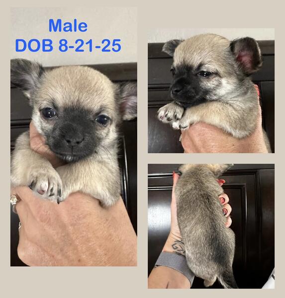 message joleebro27 about this ad Full Chihuahua. Male. DOB 8-21-25. RTG end of Oct. Mom is 6 pounds, and Dad is 3 pounds. Ready to go at the end of October. They will be dewormed with their first shots. They are very well socialized and around people and dogs of all sizes. |