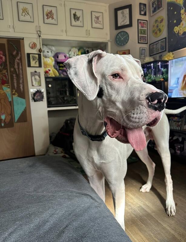message squirttle33 about this ad Due to major health issues on my part, Im needing to rehome my young male Great Dane. I will only let him go to an incredible home. Rehoming fee applies. Please send me a message with info about yourself and living situation and other pets, and any questions not addressed below. Vet reference would be great too. His name is Jordy. And he is a Harliquin Pied Dane, w two brown eyes. *Born August 18th 2024 (making him a year and a half old currently) *Parents were AKC and each had embark done, but I do not have his papers/he is not AKC registered. HE IS ALSO NOT A DOUBLE MERLE. And he does have both his sight and hearing. *Not fixed yet (waiting till hes 24 months old) *Roughly 135/40 lbs. and very tall. *UTD on rabies and flea meds *Crate trained and house broke *Does good with cats, and other dogs with proper intros. I dont have children, but his large size and doofy-ness would be a problem with small children. *Does NOT do well with backyard wildlife- he will chase any squirrel, rabbit, possum, stray cat, raccoon, etc. *He prefers to not be touched while eating. Theres no aggression there, but touches while eating make him nervous. So I let him eat inside his kennel. Theres zero problems w resource guarding over toys/bones/scraps/bed etc. *Id be willing to meet publicly, within 45 mins of the Grand Rapids area. Any further then that will need to be discussed. *I will send him with his favorite toys and bone, leash and collar, any paperwork I may have, rabies tag, and a small bag of his food to help transition him. message squirttle33 about this ad |