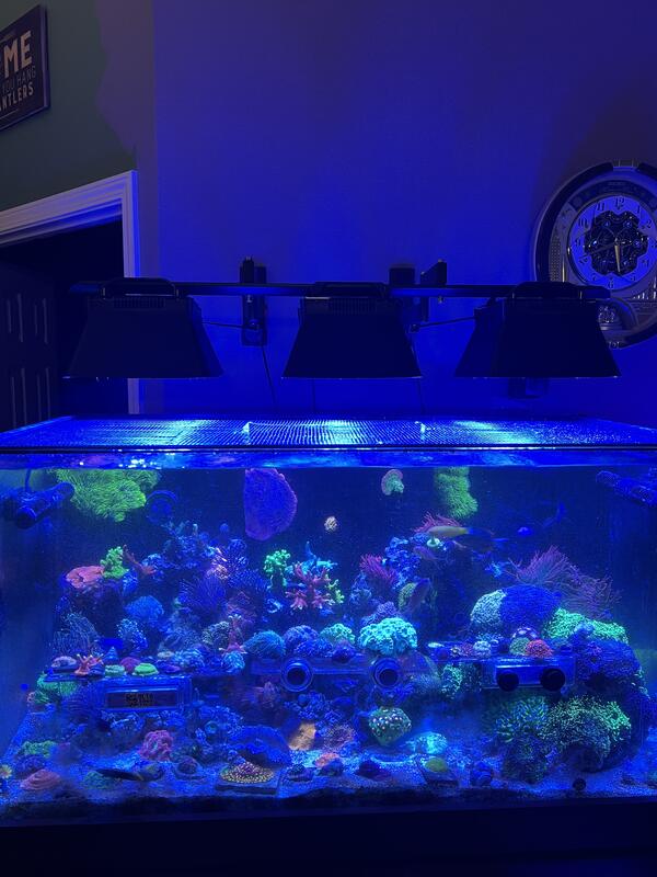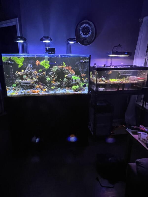 message lambertsdanes about this ad Lafayette Indiana, about and hour north of Indianapolis Planet 120 48x24 internal overflow w/ dark wood stand 3x ecotech radion g5 blue light fixtures Fiji cube 30 g2 sump Vectra return pump Apogee mq510 par meter Redsea reef dose 2 head doser 2x ecotech mp 40s Marineland 40 breeder Eshopps pf800 overflow 2x icecap 4k powerheads with hydros wave engine Reef breeder photon v2 24 Innovative marine 15 gallon ato reservoir Tunze osmolator ato Reef octopus regal 200 sss skimmer Full set of hannah photo meter testers w/ extra test kits Gryphon coral saw xl Parwise par meter Bulk reef rodi w/booster pump and water saver Various magnetic frag racks Too much other stuff collected over the years to list. WILL NOT PART OUT, system is up and running and has some nice lps and fish still in it. 40 breeder is plumbed into 120s sump on separate return pump. Struggling with phos and nitrate level due to life just being too busy. Large colony of og godzilla yumas. Tomini tang, purple tang, foxface, ornate leopard wrasse, 6 line wrasse, platinum snowflake clown, xmas wrasse. Close to $10,000 in just the equipment listed, couple grand in fish and corals. Asking $1750.00 obo. Will need large truck to transport or make several smaller trips. message lambertsdanes about this ad |
