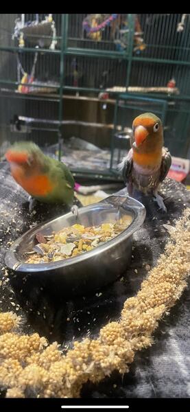 message sb2632 about this ad Text 5672245788 Male and female. Took them in to help stressed female did good until the house got busy again. Shes plucking feathers and stressed. Have family visiting in a week or 2 and dont want her even more stressed. Male is semi tame and wants to engage but is a bit fearful. Both will sit on your lap and eat and make will take food from your hand. They love to fly around. Come with large cage(cage comes with stand so decently tall currently isnt on it as it was to tall in the space they are at food, treats and supplements, and anything else they have. Went down from 500 asking 350 to good home! |