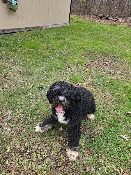 message clmbr7513 about this ad Very high energy. Bernese mountain dog poodle mix. She is very energetic. Takes time to get to know you. She is about 15 months old. I have MS so she is too hyper for me. She is house broke. She would make a good watch dog too. Once she gets used to your family she is very protective. Does not bite. Small rehoming fee. She has not been fixed yet. Up to date on shots. She does need groomed however shes been outside. Because I have MS and she tends to knock me down. I got her for a service dog. But she needs a lot of training. Would make someone an excellent dog for their family need to spend time with her though. Also I would think she weighs probably about 65 lb maybe not that much but she seemed like it |