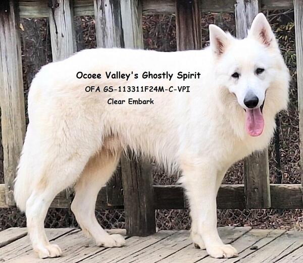 message ldeverdis about this ad NOT FOR SALE Stud ONLY Spirit is AKC registered out of White Swiss Shepherd lines. Champion all white pedigree not possible in American lines. He is very soft tempered with no prey drive, he is a huge boy with heavy bone. Genetics are clear! OFA certified! Masking Sable, carries solid black. Spirit is a direct grandson of RWS r. World Winner 2017, MULTI Ch GRAND Ch INTER Ch. Solo contro tutti od bijelih anela and great grandson of RWS WORLD WINNER 2017.and BOB, INTER Ch, Vet.European Winner Frida od bijelih anela Ladies must have negative Brucellosos test prior to breeding. Pick of litter accepted on select breeding only. Check us out ~ FB Ocoee Valley German Shepherds |