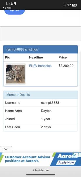 message bottomsuppygmys about this ad I recently bought a Maine coon from the people with this account. I payed for breeding rights which I never received the legitimate papers nor did I ever receive the vet paper work that was promised. They also sell frenchies as well BEWARE |