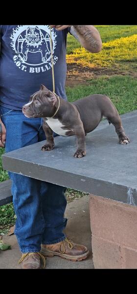 message gotbullies about this ad Chocolate female full tail, ears done, papered, 4 sets of shots and dewormed. Message me here or at 916 308-6082. |