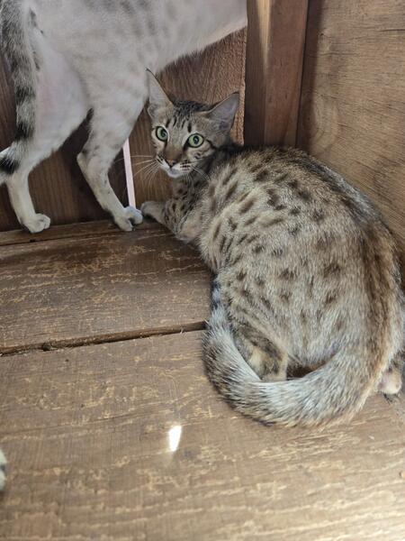 message pinkkris about this ad F3 Snow with pink nose is 2k with tica papers breeding rights for her extra 1000 No papers pet home is 1000 F3 Traditional female with pink nose is 1500 with tica papers or extra 1000 for breeding rights. No papers, pet price is 500 Dad is red savannah pink nose F4 Mom is traditional with black nose F2 (Parents not for sell) Kittens are sisters if you wish to purchase both i will give you rights to sister and kittens for total of 5500 for both. |
