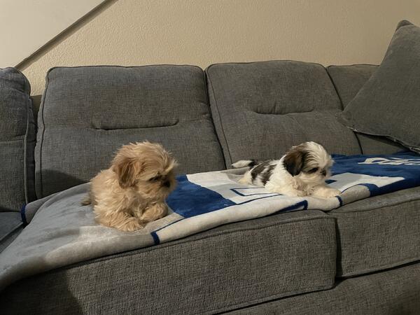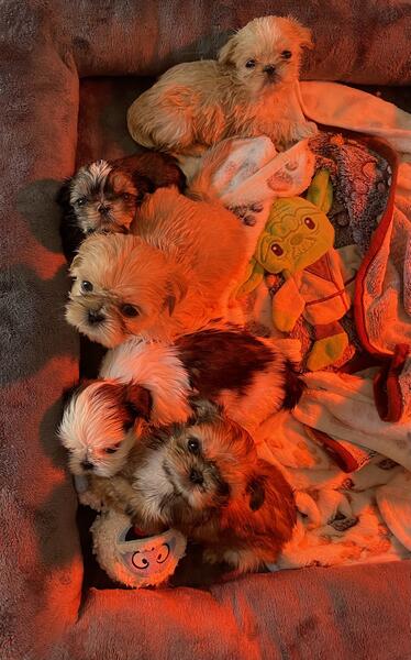 message kcb11 about this ad 5 Shih Tzu pups looking for furever home 3 Females 2 Males 2 months old, 2nd set of shots+deworming Parents are pictured, small and petite both between 7-10lbs Text 5623368260 for more info |