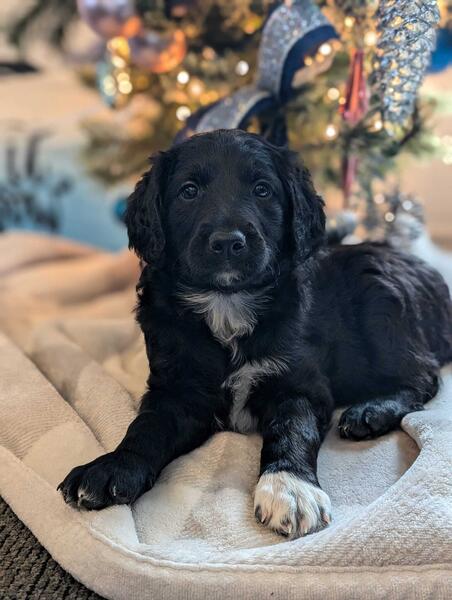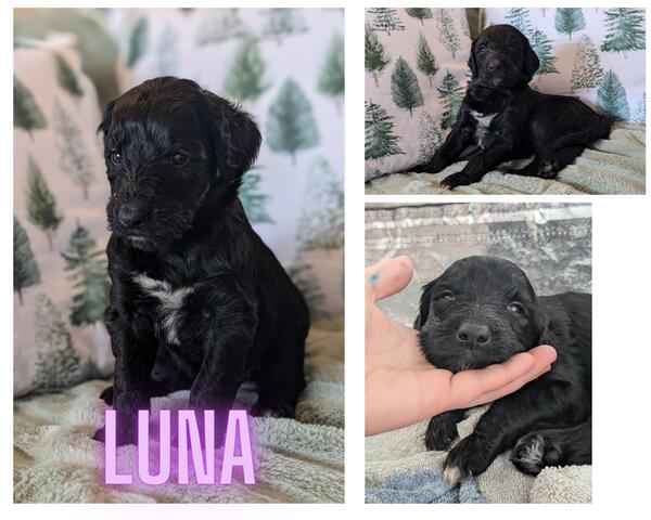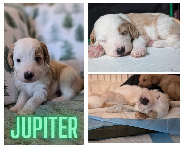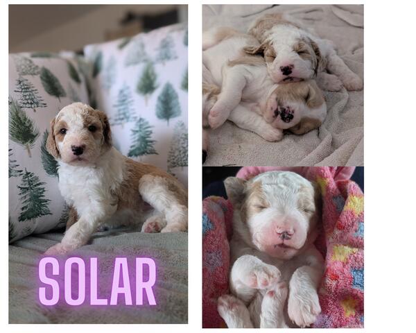 message jmcct6021 about this ad ~ Thank you for taking a look at our gorgeous litter of Double Doodles These babies were born October 5th, 2024 and ready for their new homes Dec. 7th, just in time for Christmas! Mama is a first generation Old English Sheepdog - Poodle The Sire is a first generation Golden Retriever - Poodle We estimate they will be 50-60 lbs. There is a high chance that the puppies will be non-shedding due to their significant percentage of poodle (hypoallergenic) and low shedding (sheepdog) traits. Mama hair hair as opposed to fur and dad has very curly poodle-like traits as well. Puppies will come with their vet records, up-to-date shots, dewormed, a small bag of the food they have been raised on, a small cuddle blanket with the scent of mama and their littermates for an easier transition, and a toy. A $250 deposit is required to secure your puppy and have choice of the litter; thus being first come/first served. All of our puppies are lovingly raised in our home, and are very well socialized with other dogs, adults and both small and large children! If you would like to know anything about their personalities, please let me know! Photos will be updated, but feel free to contact me for a video/extra photos if you are interested in a specific pup. Personalities of our pups so far: Saturn: Saturn is one of our chillest dudes! Hes cool to cuddle, to be on his own or to rough house with the other pups! Hes a well rounded little man so far! Eclipse: Eclipse was our last born and by far our biggest puppy! He loves to play and seems like he will make a fantastic protector! He loves to rough house with his littermates but is a big cuddler! Hes voted most likely to lay in your arms the longest! He looks like a bear! His coat is quite wavy. Jupiter: Jupiter is a very independent boy! Hes so ridiculously cute, he looks like a little cartoon character, the photos do not do him justice! He is quiet and sweet, always running through the crowd to give kisses! Also an A+ snuggler! Aries: Aries is our biggest girl! She has an adorable white "sock" on one foot! She loves to play with her littermates and is a bouncy girl, she will be a blast to play games with! She is a riot! Her coat is wavy. Astro: Excuse his face, he had a fresh meal right before his photo! Hes our most chill, independent pup! He can be found having a snooze while the other 7 are in a bawling pile He loves giving kisses and cuddling up but is more than content to go and lay down solo! Hes mamas reverse colour twin! Solar: She is our curliest most poodle-like pup! She looks so elegant with her wavy face and ears, but isnt afraid to challenge the big boys while they play! She is quiet yet playful and gets so excited to get to the front of the crowd to give kisses! She has a very wavy coat! Aurora: She was born the smallest of the bunch but quickly made her way to the middle of the group! Shes so incredibly loving and would much prefer to lay on your lap, getting some ear scratches than to roughhouse with the other pups! Shes a people loving pup for sure! Luna: Luna is currently our smallest pup. She has white toe tips and a white chest. She was born with the blackest, silkiest hair! She is so, so sweet. She gets really excited when I go to say hello and somehow, despite being so petite, manages to squeeze through the group and lay in my arms, waiting to give 1000 kisses! She is a very quiet little thing! The last 2 photos are mama and dad! Please contact me for updated pics! I have too many to add! message jmcct6021 about this ad |