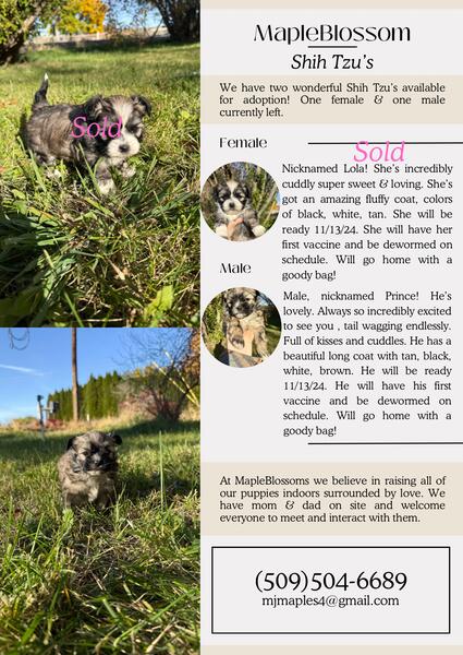 One male Shih Tzu left. 8 weeks old! Up to date on vaccines and dewormed.