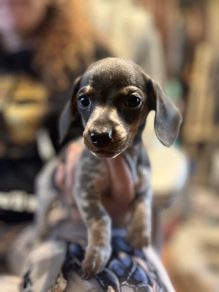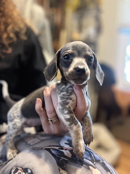 message fwlzkz6 about this ad Rare colored blue and white mini dachshund female available. This sweet healthy, tiny girl is ready for her new home. Current vaccines and puppy pad training going great. No papers |