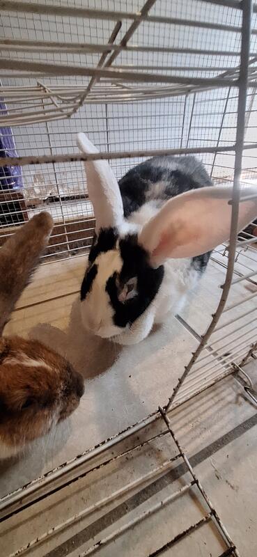message lizzyj45311 about this ad Two large breed rabbits. Does. Sisters. Will be 3 yrs old January 2026. Free range indoor pet rabbits. Litter box trained Hazel is brown and white. Evelyn is black and white. Friendly. Need a new home. Located in Camden OH |