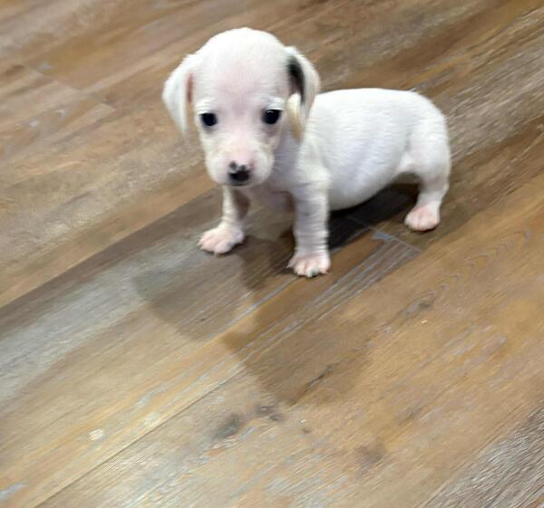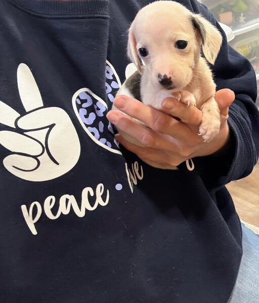 message ky76 about this ad Lucy is a beautiful little girl white and black piebald mini dachshund puppy shes very playful shes been to vet has clear bill of health will come with her record dob 9/21/25 her mom is lh red sable dad dapple if your interested in this baby girl please call Me or text me six 0 6 226 six6 7 2 |
