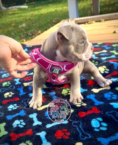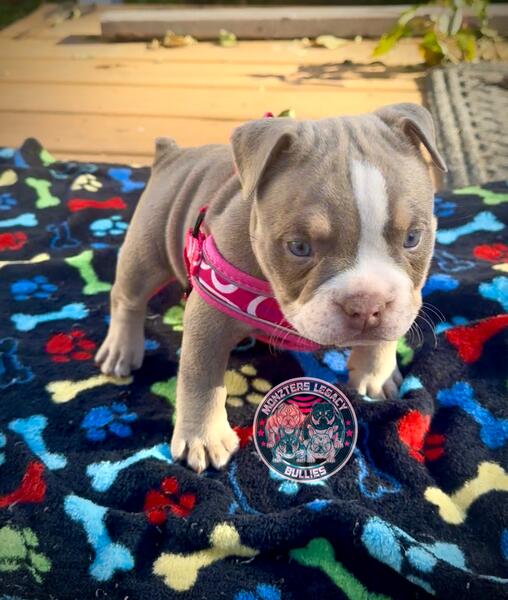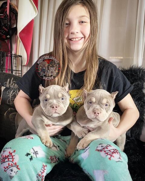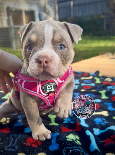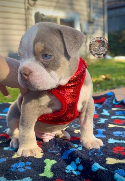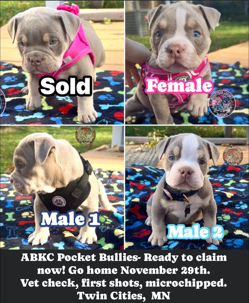 message thebullymom about this ad Gorgeous color. ABKC American Bully puppies. 2 males and 1 female available. All lilac Tri super color carriers Wonka line. 2x Hades nub tails. $500 deposit to claim goes towards full price and includes a deposit contract for receipt. Ready to go November 29th after vet check, first shots, and microchip. Come with a health guarantee as well. Twin cities MN. Payment plans with a contract also available if needed. Text 7638982835 |