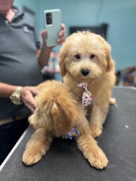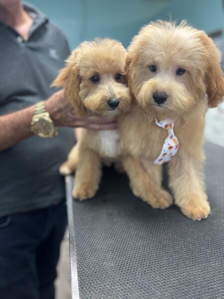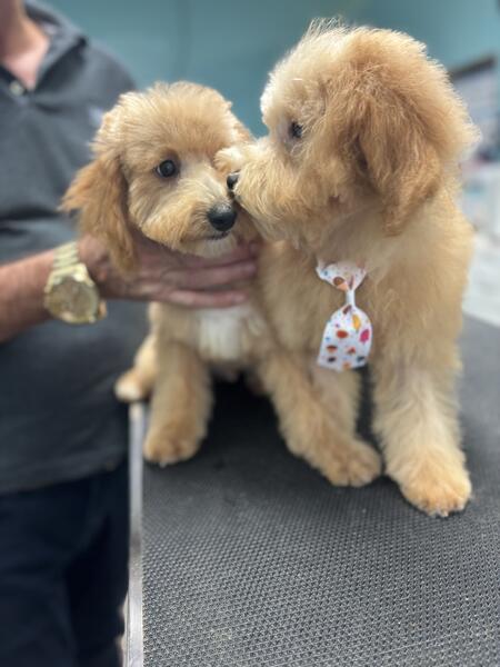 Mini golden doodles , 3 months old up to date vaccine, shot records . 239 three five one 9942