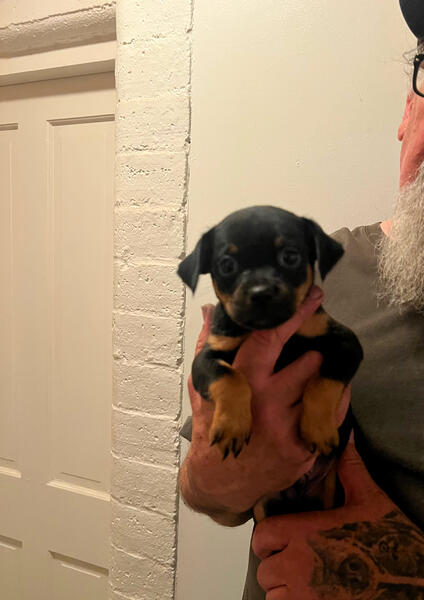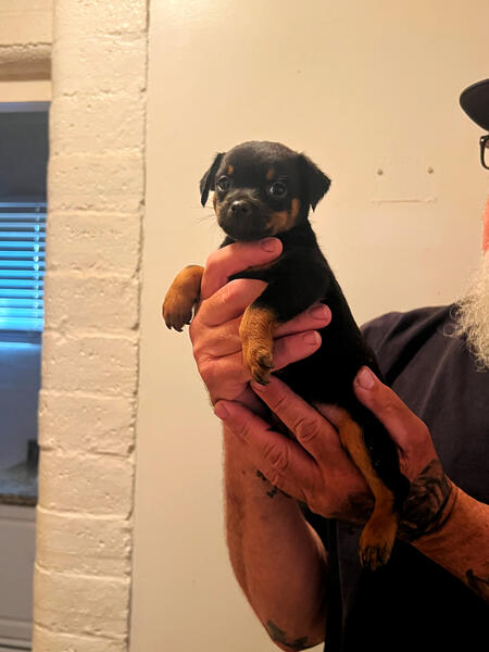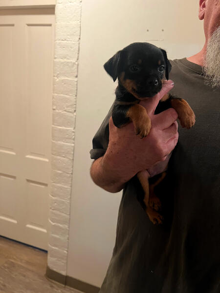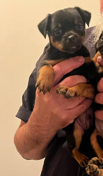 message daniellecheri about this ad Rat terrier mix puppies. Tails docked and up to date on shots. Super out going and happy puppies. Would make great family companions, ranch dogs, hunting dogs, and truck/travel dogs. They look like miniature Rottweiler puppies. 9-20lbs adult weight Mom is rat terrier and is used for hunting. Ready to go |