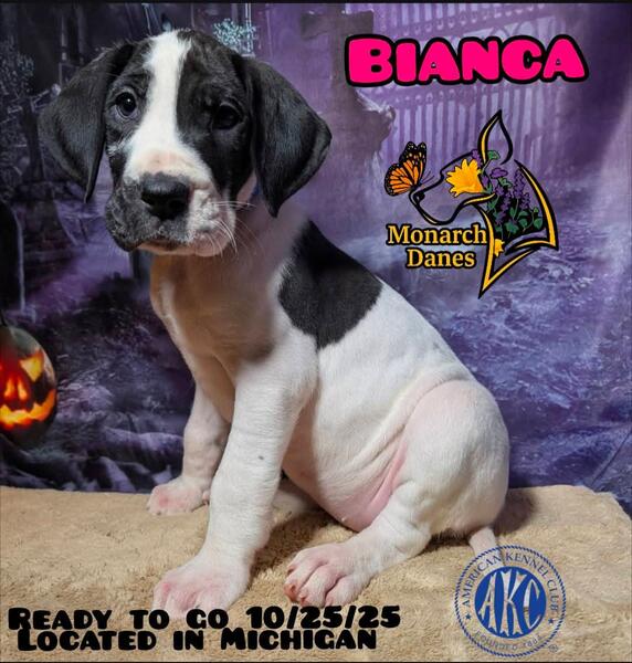 message grtdanelvr about this ad Our Great Dane puppies are $2,000, with a small 100 hold fee if unable to pickup within 3 days of approved app and you want to reserve the pup. They are 8 weeks old and ready to go home any time. I'm located in Bay City Michigan but able to meet elsewhere as well. Come with: AKC Limited Registration papers Contract including 2 year genetic Health Guarantee Vet checked with clean bill of health First vaccines Dewormed every 2 weeks Microchipped A fun puppy pack food, toy, blanket, and records Lots of love, socialization, and lifetime breeder support from me! I raise my pups right in my home, so theyre used to everyday sights, sounds, snuggles, and attention. My goal is to make sure each one leaves here healthy, confident, and ready to fit perfectly into their forever family. If youd like, we can set up a short video chat so you can see the puppies in person before filling out an application I love giving families a chance to meet them and see their personalities shine! I also have more pics and videos on my page Monarch Danes. Once youve found your favorite, Ill send over a quick application and we can go from there! message grtdanelvr about this ad |