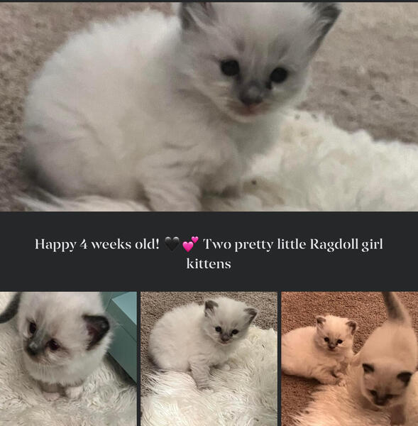 message katsravishingrags about this ad I am slightly negotiable with prices. Prices depend on genders and colors. (MITTED SEAL POINT SOLD PAULETTE) BLUE POINT MITTED AVAILABLE Meet your new best friend I have two ravishing Ragdoll female kittens available. Their date of birth is March 21, 2024, they will be ready for their homes on 05/19/2024 at the age of eight weeks three days. They will be up-to-date on their first set of vaccines and dewormed. 1 mitted blue point & 1 mitted seal point. My kittens get so much love and attention once they begin walking around at 3 weeks old especially! My family and I are always talking, petting, & holding them. All my cats & kittens love being loved! .They will be eating dry food and will be litter box trained. They also love to have a cat scratching post or a condo or a cat tree. These kittens are raised with love and attention. Ragdolls are the definition of the floppy cat. They are ranked excellent in being a family cat. The mitted blue point is $1170. I require a nonrefundable deposit in the amount of $200 and the remaining amount when you get your kitten is due in either cash or cash app , the deposit is cash or via cash app & no checks! If youre interested in either kitten, please contact me via gokitty or via text or phone call. My number is 717-403-6107.I hope to hear from you soon! I am semi negotiable on the prices of the kittens. Kittens are priced differently due to colors & genders. message katsravishingrags about this ad |