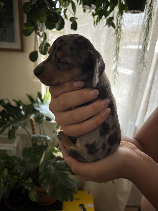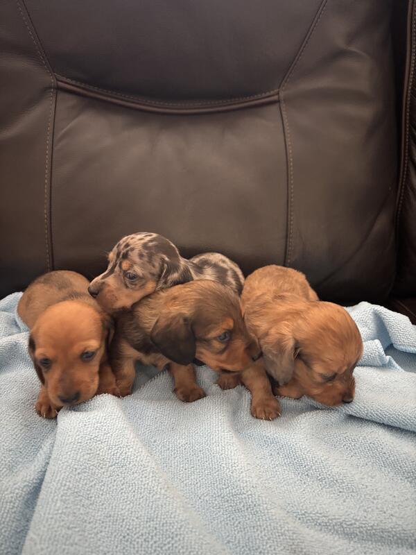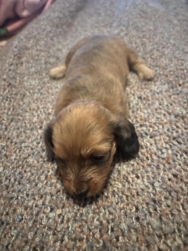 message zeesdoxies about this ad I have two long hair dachshunds and two short hair puppies available. They were born 5/23 and just turn 4 weeks . Both parents are AKC registered. We had families from all over California come and buy a puppy from us . So you can trust that you will get a beautiful purebred dachshund. Please contact me for more information or to set up an appointment to see them in person. 909 685 7728 |