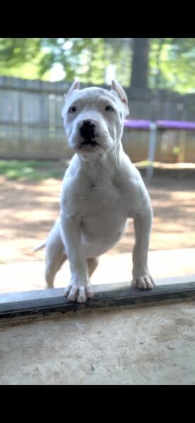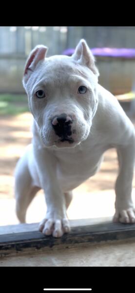 message chrisrich about this ad Her name is Elsa , shes a Merle all white bully about 70lbs. Born Jan 15 2024. Two tone color blue eye(s All shots and vaccines. Moving states not sure if Ill be able to bring her |