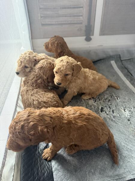 message brookejakubowski about this ad We have a liter of 6 mini goldendoodles for sale. They will be ready first week of February. We have 3 boys and 3 girls. They will be 20-25 lbs full grown. We are located in Newport MI, delivery or meeting halfway is available. Parents are health and genetic tested. Pics of parents in photos Puppies come with shots We are offering a $500 discount for Christmas, bringing the price to $1000. Text me at 734-493-6668 for further details |