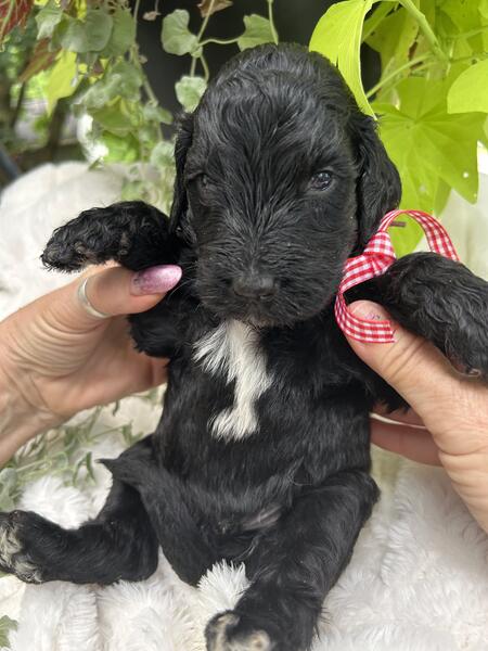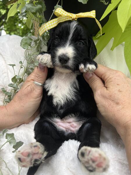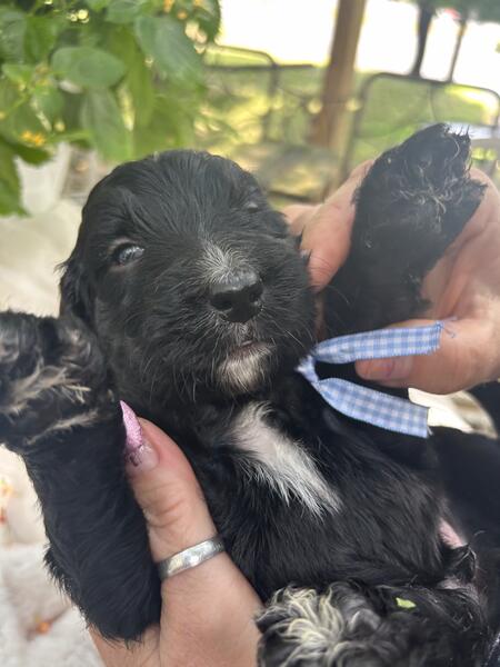 message alittledoodledoya1 about this ad Litter of 7: 3 girls and 4 boys Expected adult weight: 50-65lbs (medium breed) Born June 18th, 2025 These sweet Golden Mountain Doodles make excellent companions loyal, gentle, and protective, with a temperament perfect for families. Theyre wonderful house dogs and love to be part of the daily routine. Mom is a Bernedoodle (Bernese Mountain Dog x Poodle) and Dad is a Goldendoodle (Golden Retriever x Poodle combining three intelligent, affectionate breeds. Expect smart, social, and low-shedding pups with big hearts and playful spirits. Many of the puppies have beautiful tri-color or unique markings that typically value them between $4,300 and $4,800 but were offering them at a marked-down price of $2,500 to help them find their forever homes quickly. Ready to go home mid-August. Dont miss outreach out to reserve yours today! *The larger dogs in the pics are the mother (black and white) and father (golden-blonde) For more about our mission and to verify as non-scam, visit our site: site: www.alittledoodledoya.com email: alittledoodledoya@gmail.com message alittledoodledoya1 about this ad |