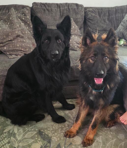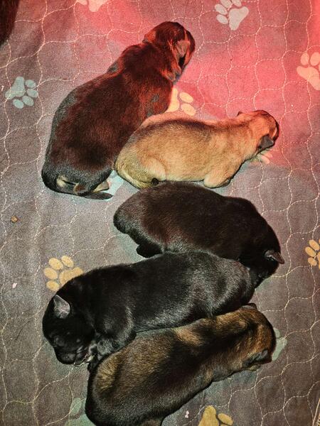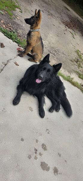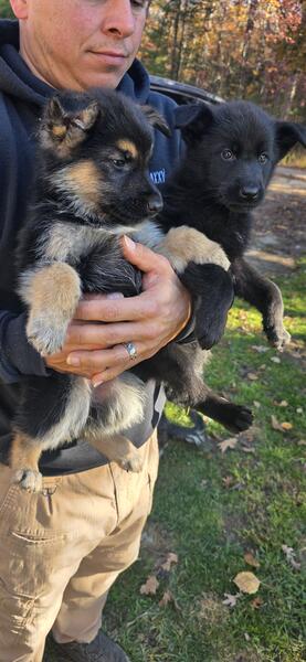 message rashausgsd about this ad From a beautiful litter of 5 Born 9.15.25 AKC Registered German Shepherd Both parents on site Solid black female born with a short tail, no issues at all. She will come dewormed, vet checked, first puppy vaccine. 400 limited reg. Dam is solid black standard coat. Sire is solid black long coat. |