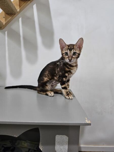 message bestbengals about this ad "Maybelle" is a cute, marbled Bengal girl & is a 1st for our cattery. We usually do not produce marbles, so this is a rare kitten for us. She is a very sweet kitten & her colors are coming in better each day. All kittens come with age-appropriate vaccines, are wormed on schedule, microchipped, spayed or neutered, 30 days, free insurance coverage, TICA registration papers, are fully litter trained & a FL state health cert before leaving my home. All kittens also come with a year congenital health guarantee & lifetime breeder support. We are located in central FL but can ship to any state within the US & Puerto Rico. EXCELLENT references available as well as Facetime chat available. Please call/text 386-276-6339 for more info on "Maybelle |