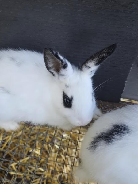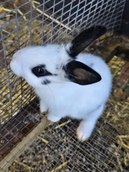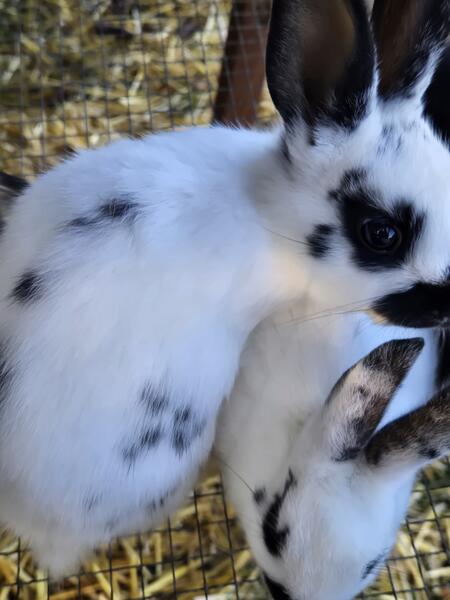 message sprdn1900 about this ad 50% mini rex 50% meat This wasn't on purpose but they sure turned out adorable! 5 black and white baby bunnies for sale Some with mustaches Some without mustaches Handled daily Absolutely gorgeous |