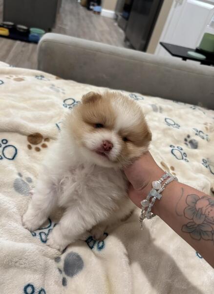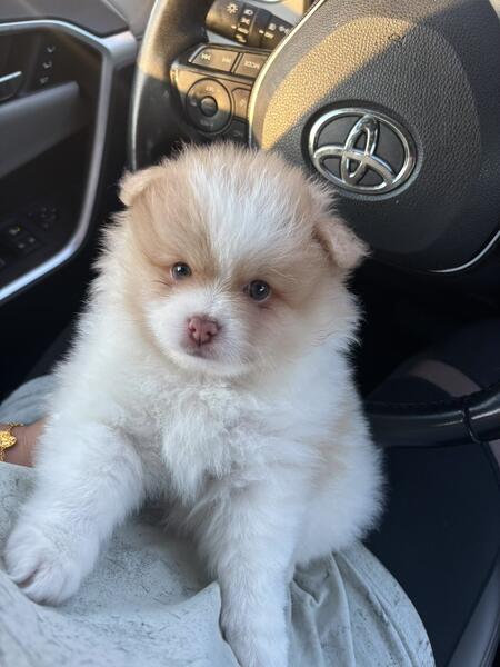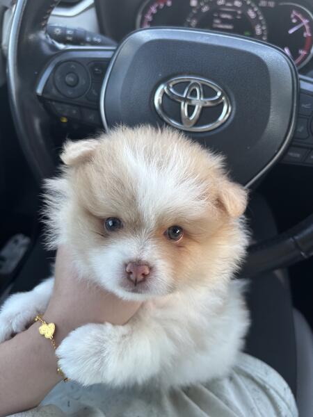 message koby1222xuan about this ad Curry ~ he was born June 16th, 2025. Hes a cream baby face pomeranian and will weight about 11lb. He got his first shot on the July 29th and he is ready to go. Both of his parents are CKC registered, dad is baby face pom and mom is fox face pom. if u are interested please let me know 6066208638. He will have a gift bag to take home too |