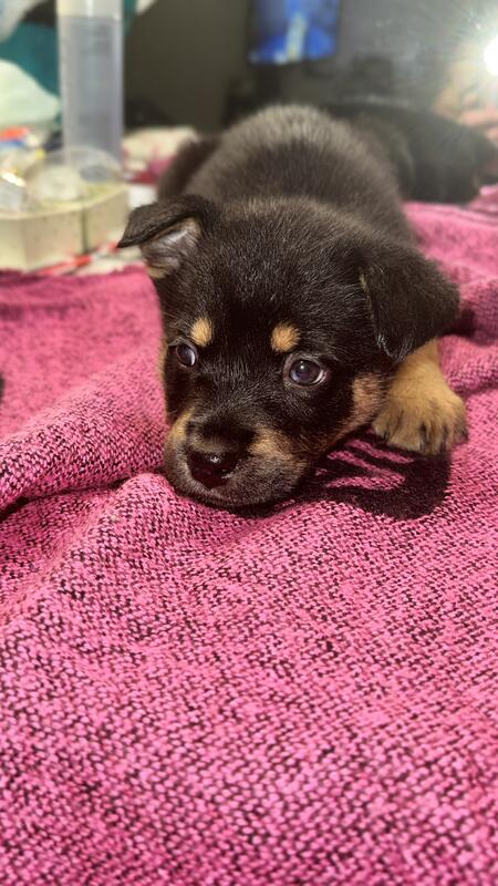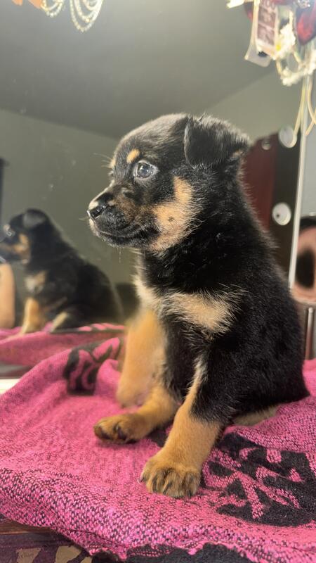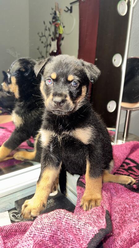 message brare2025 about this ad 5 female 1 male Rotsky puppies. Born September 21, 2025. Ready for their forever homes. They will have their first shots before leaving to their new home. Mom is pure pred German Rottweiler and Dad is Siberian Husky. The are Pet Only as I have not go them registered and do not have the AKC paperwork. There is a rehoming price reduced, due to no papers. |
