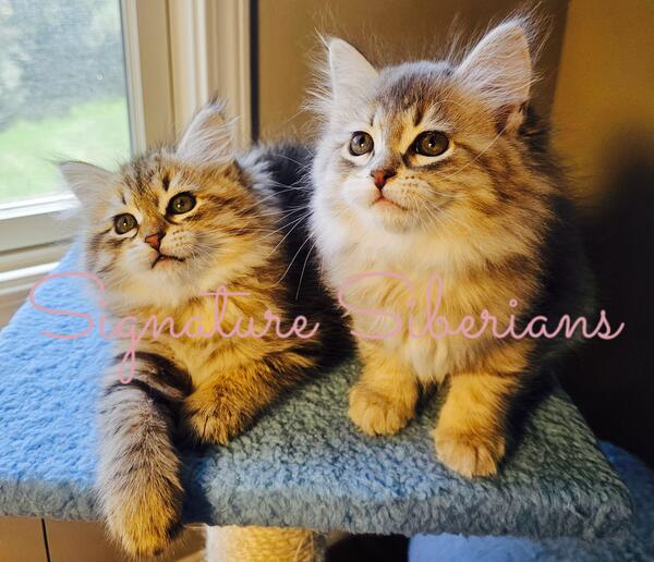 message signaturesiberians about this ad Beautiful, Hand-Raised Siberian Kittens TICA Registered Our Siberian kittens are lovingly hand-raised in our home and come fully TICA registered. All breeding cats are thoroughly genetically tested before breeding to ensure the health and quality of our kittens. Each kitten comes with a one-year health guarantee. They are litter box and scratching post trained, and have been well socialized and loved by toddlers, teens, and adults alike. These affectionate, intelligent kittens are ready for reserve at Signature Siberians. |
