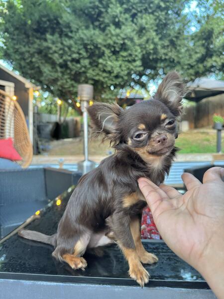 message mph7821 about this ad This tiny male chihuahua is long haired chocolate and tan. Dont see too many out here like him. He has an incredible calm temperament, super sweet and loving. Does not a bark excessively like most chihuahuas do. His sperm has been tested and is ready for some females. I am a Professional dog breeder so he has been given the proper care. Will help and assist in marking sure everything goes well. |