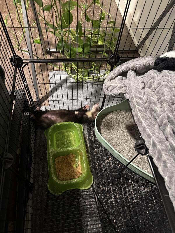message pitbull1214 about this ad 2 month old male ferret for rehoming. He is super friendly and fully litter trained. Loves to play and especially loves cat balls. There is a rehoming fee of 600, but please note this includes him, carrier, 2 level cage, litter box, food bowl, blanket, basket, some toys, food, and litter. Supplies will last him for months. He was and is an investment. Only rehomimg because apparently Im allergic. |
