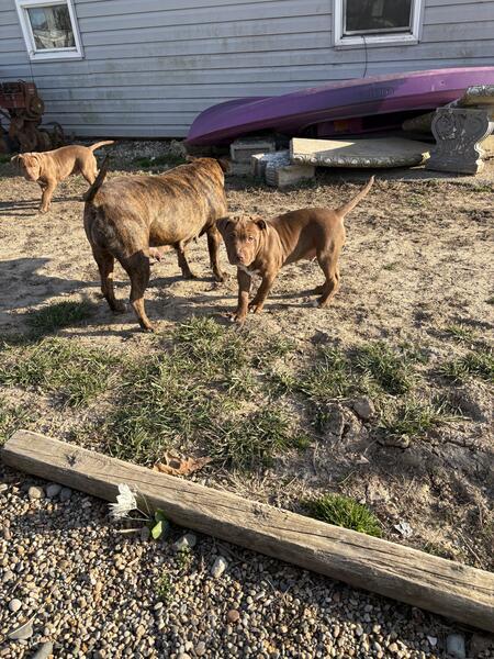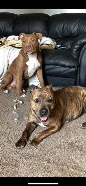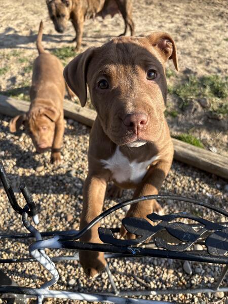 message angeleyez8282 about this ad 2 male red nose bully pitbull pups full blooded no papers have been wormed and first round of puppy shots given! Born Christmas Day 2024! Parents pictured also! $200 obo |