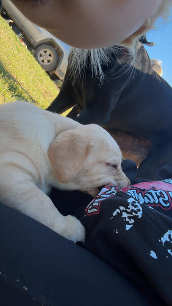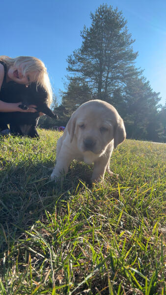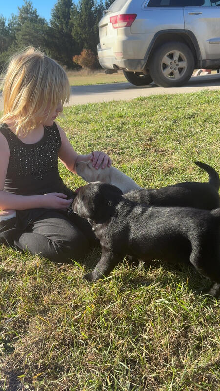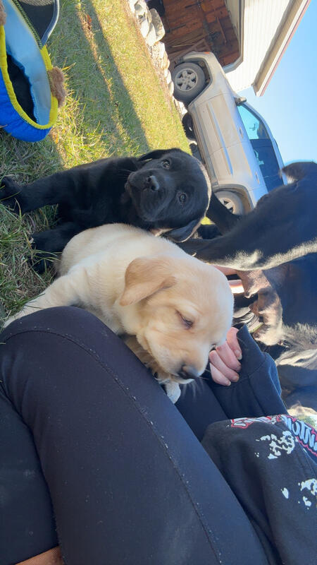 message hannahk10 about this ad Pure bred lab puppies born sept 25 ready next week. Will come with first shots/worming. Very socialized with kids an other dogs. Both parents pictured. |