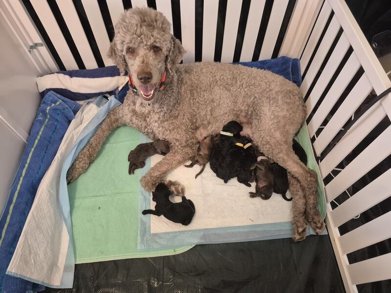 message wbshshks9ue about this ad Ready January 25th. Will meet or deliver in Wisconsin, Michigan, Minnesota. High quality, AKCparents health tested. Pups have doubke fading gene and are currently brown and black but colors will change to Silver Beige, Silver and Blue, uncommon colors. Parents excellent temperaments. 3 males, 5 females. Dam is hunting line poodle, upland work and retrieving. |