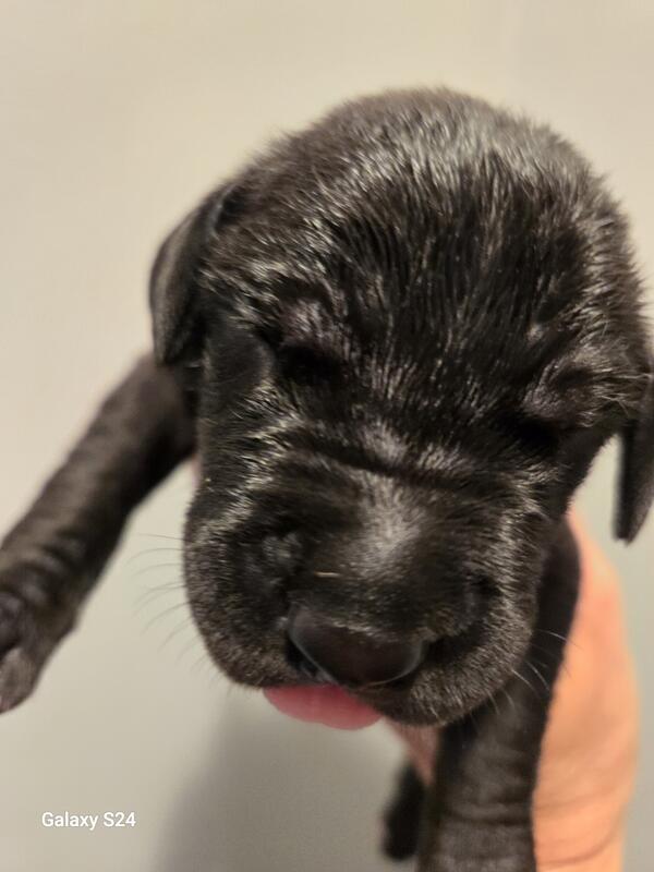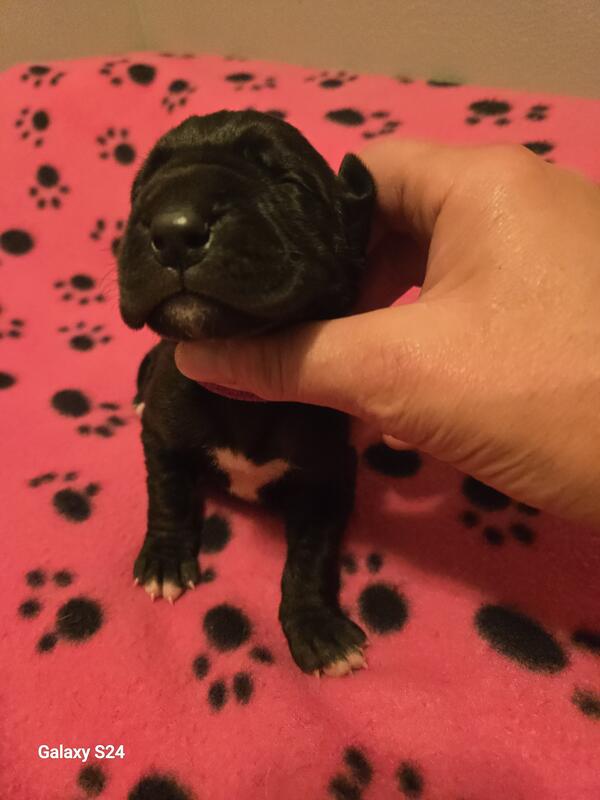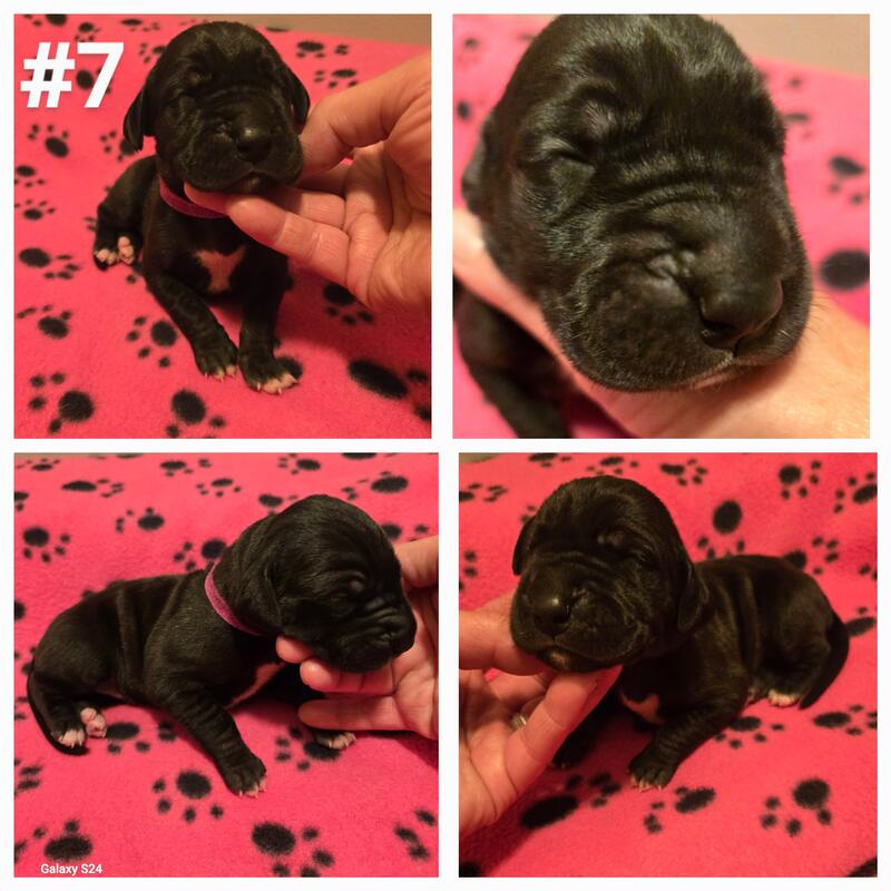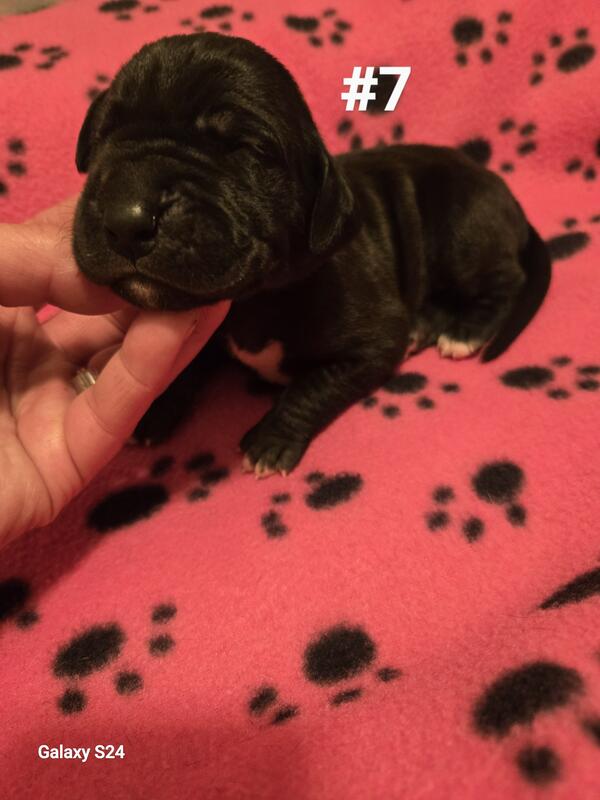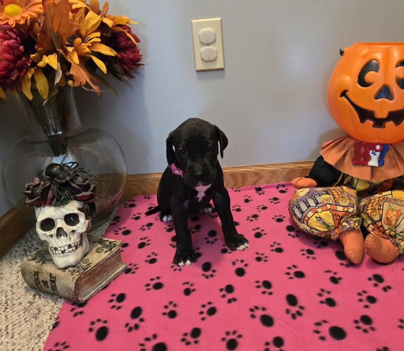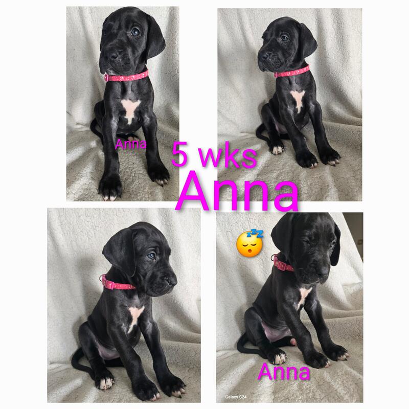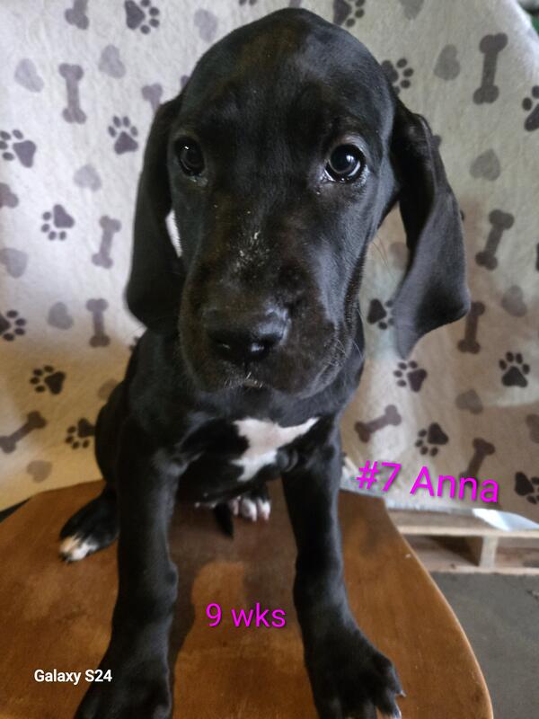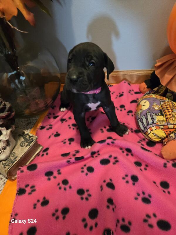 message hicksboxersdanes about this ad Born sept 29th 2025. Black to harlequin breeding. Litter of 12 with 4 still available. We have 1 black male & 3 black females. Pups are utd on shots and wormings. Started on basic training. Come with akc registration & full puppy package Vet health exam . If interested call or text 231-924-2983 for more info |