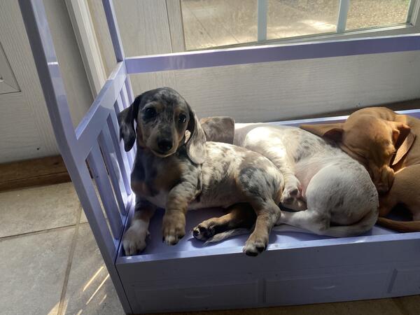 message jcpuppies about this ad 3 girls 1 boy Grey Tri Merle dark blue eyes - female (VERY cuddly) - mittens. (Sold as of 9-1-25) Double dapple Isabella pie bald w/ sky blue eyes - boy - bullseye Red w/ green eyes - female - latte Brindal - black eyes - female - brownie (possibly keeping still debating ) Theyre crate trained. Theyre potty trained. Birthday 5/12/25 Picture of mom and dad is last 2 photos (not for sale) Dad - pie bald Mom - grey tri Merle |