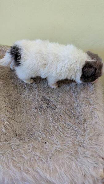 message chihuahua419 about this ad I have a female brindle and white long haired chihuahua puppy She is mostly white with brindle on her head and brindle back by her tail She is a fluffy girl Her name is Chloe She is 9 weeks old She is up to date on shots and deworming She's ready for her new home |