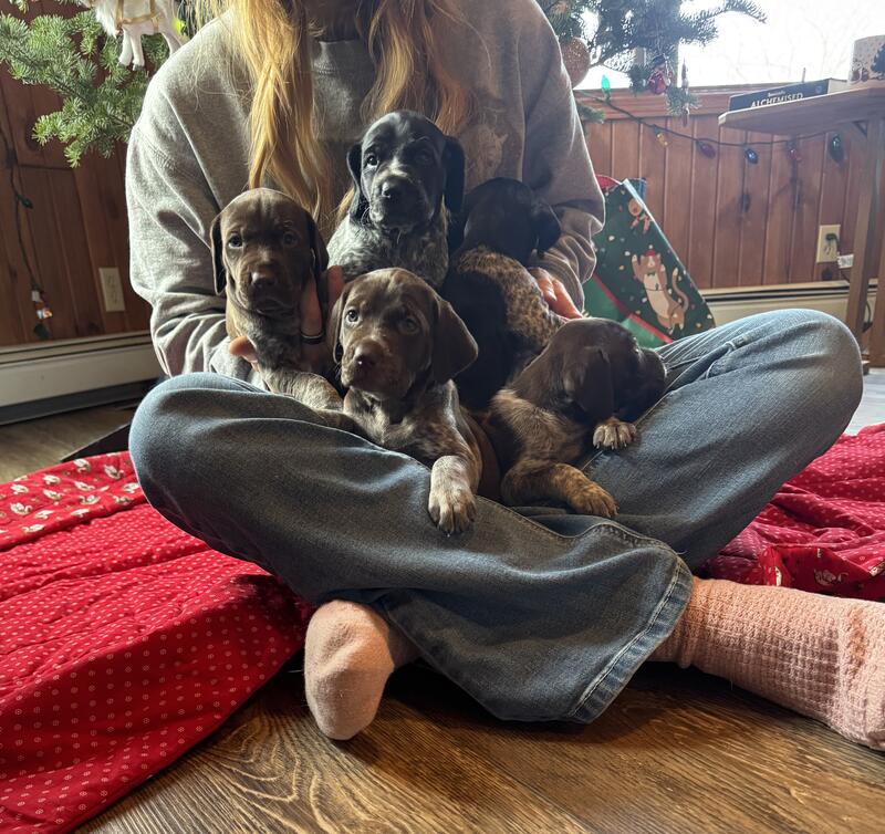 message bigrockvonkennels about this ad READY TO GO AROUND CHRISTMAS Males and females available in both colors. AKC registered We have been raising Field & Family GSPs for over 30 years. Champion bloodlines - - check out our website for all our history: www.bigrockvonkennels.com Our dogs compete all across the country and are World Champions! This litter is a perfect field & family cross. Mom and dad are both superb with a ton of bird drive/natural instinct. They are also extremely affectionate and loyal - - very easy keepers for our family; they love everyone they meet. They are rockstars in the field, and when you get them home they turn into 50 or 68 pound lap dogs. This whole litter should be exceptional in the field as well as in the home. Our puppies are raised in our home and are loved on every single day! We socialize them around kids, other dogs, cats, etc. to make sure they all have a great start before going to their new families. We have been raising dogs as a family for 30 years now and can't imagine our life without them. For more info about us and our dogs, please visit our website at: All of our puppies come with a 60-day FULL SATISFACTION guarantee. They will also have their first set of shots, deworming, and a vet health checkup completed before puppy pick up day. We are also willing to drive and meet for puppy pick up if it helps cut down your travel time/costs. Please call/text us at 715-218-4559 for more info or email us at [email protected]. Thank you! message bigrockvonkennels about this ad |