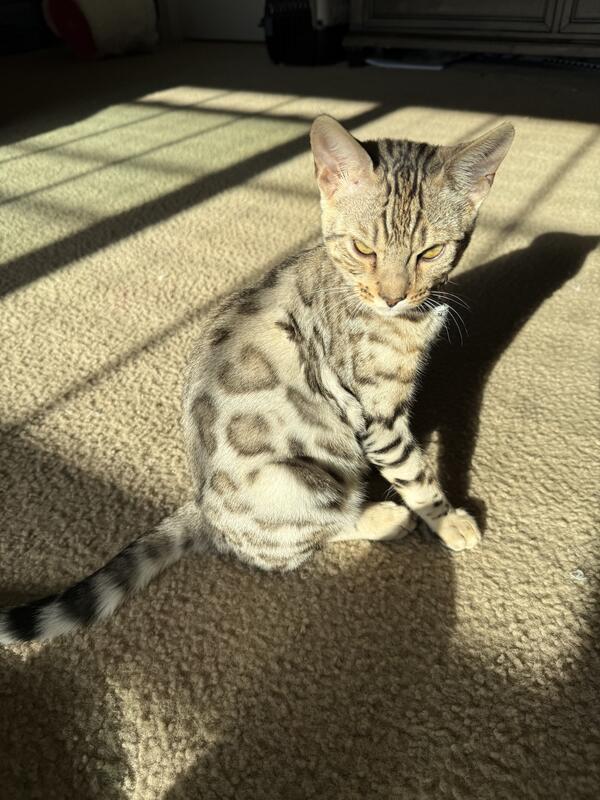 11 month old brown male Bengals for rehoming. Displays no behavioral issues. Good with other cats and kids. Will come with vet records and utd on all shots and deworming. Not neutered. ONE male remaining