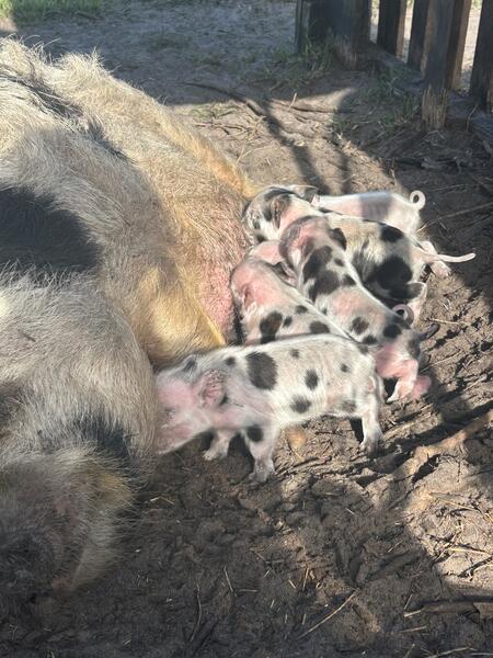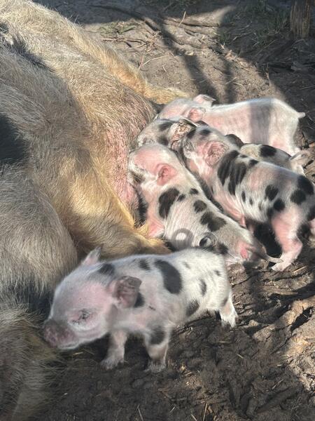 message ourkingdomhomestead about this ad Ready NOW They are very flighty, make me an offer, I need them gone asap, I don't like chasing pigs, lol Beautiful Micro mini X Kune Kune pigs Re-home Adoption born on 4/10/2025 ONLY 6 Available We have 3 gilts/female (All white female SOLD) And 2 boars/male the Kune Kune side of the breed is They are extremely gentle on the land, great temperaments, friendly They don't usually dig/root They can live solely on grass Dual purpose breed (they eat grass/pig weed) great for food as well and good lard. They can make good pets, they are happiest with a buddy of the same species. They take a little longer to reach butcher weight but when they do, yummy the sweetest meat I've ever had. The micro mini Pig side is new to me (My sow escaped her one acre home/pen, and crossed the fence to get to a boar, she was in heat) and now we have these little guys. mom is on site and is a registered purebred kune kune pig dad is a neighbors and a micro mini breed pig. I don't know much about the breed, but can pass along her info. Serious inquiries only three 5 two * 8 zero 1 * 4 three 2 three message ourkingdomhomestead about this ad |