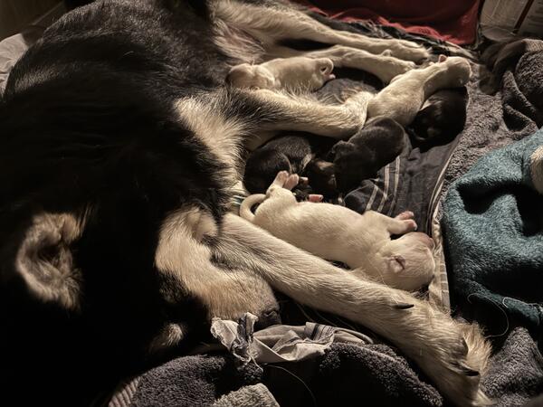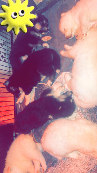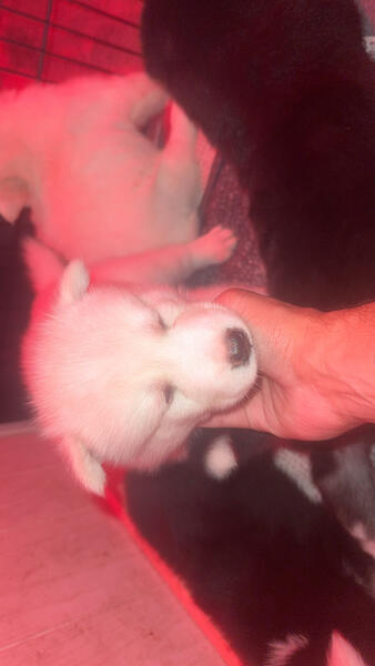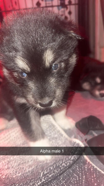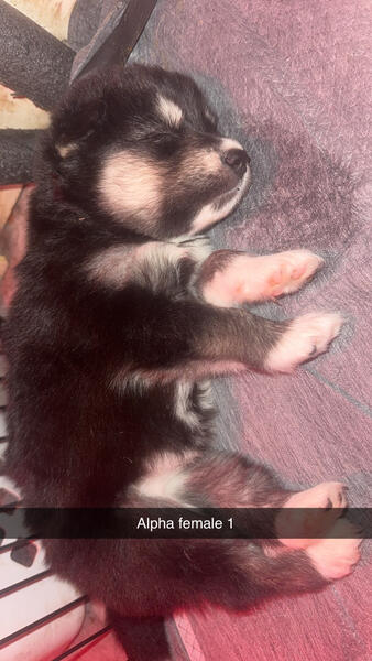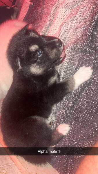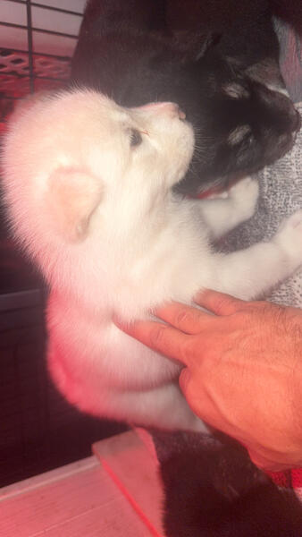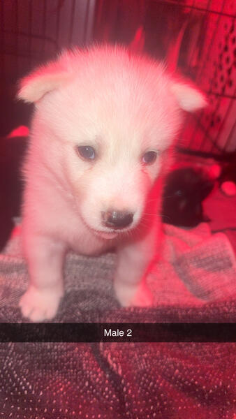 message manwitplans about this ad Currently 2 weeks old taking deposits asking 850 for females 800 for males they are going to be beautiful mark my words dad is akc Siberian husky white and so is akc Alaskan malamute 4 boys 3 girls 4 all white 3 black with white markings 1 all white female 2 all white male 2 black males 1 black female All white puppies are going to be huge they eat double very good eaters. Some dogs have that natural eating mentality some dont. The mom has that Eat anything mentality the dad doesnt more picky lol So the white ones got that personality Currently 15 days old as of 2 weeks 1 day. As of August 7 2025 Should be ready sept 24 taking deposits now Message me or text 7.5.7 2.6.68.5.2.5 |