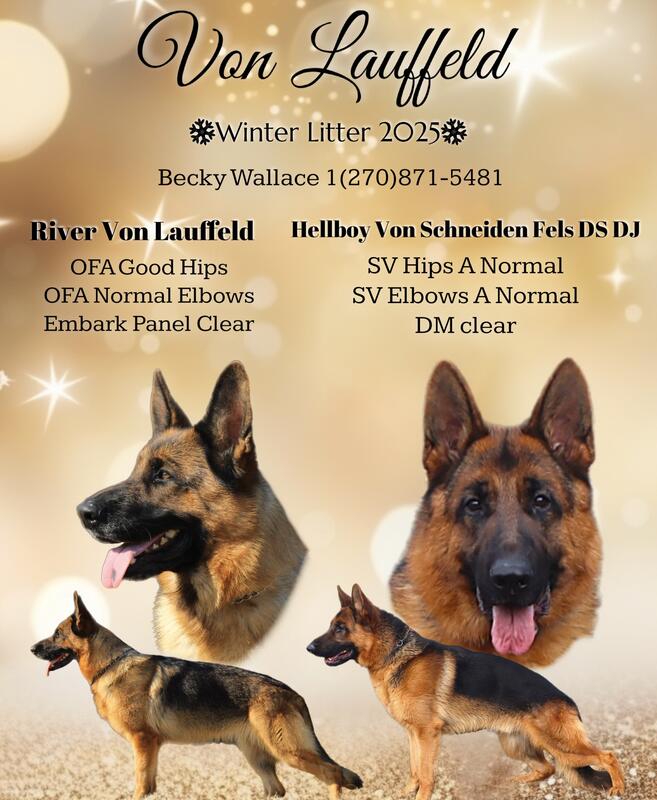 message somosramos22 about this ad 2 males and 4 females born December 15th! AKC Registered German Shepherds out of some really nice champion bloodlines. Parents are health checked, including DM clear and passing scores on hips and elbows. Both parents have fantastic temperaments! Puppies will be vet checked, dewormed and have their age appropriate shots/vaccines. Ready for their new homes February 14th $1,400 each. $200 non-refundable deposit to reserve your puppy. $1,200 due at pickup First pick and first pick female are reserved. Please call or text Becky Wallace for more information 1(270)871-5481 LOCATED IN PRINCETON, KY |