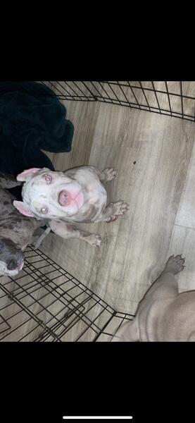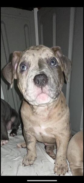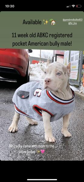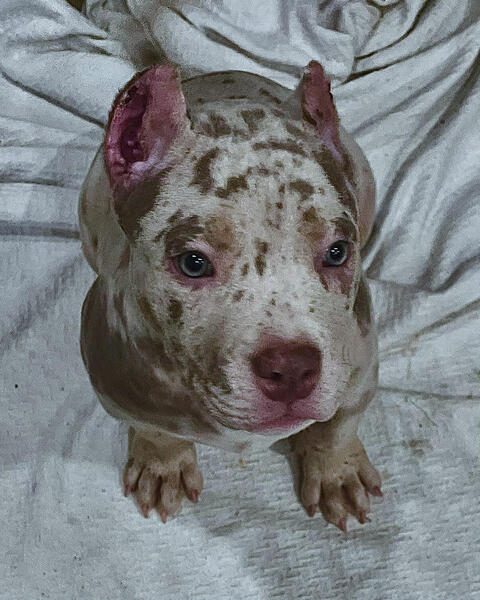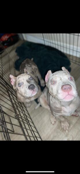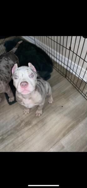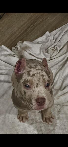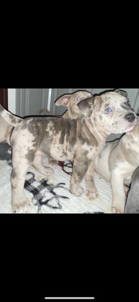 message gamebredbullies about this ad Beautiful Merle pocket American bullies , male and female great temperament , amazing structure. GrChRockomania grand babies. Abkc registered, first set of shits and deworming as well also ear crop included |