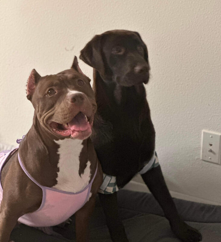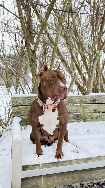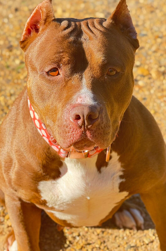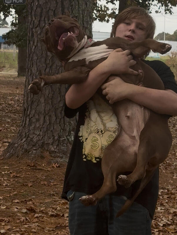 message stormyskys528 about this ad this is my xl american bully kitkat she is abkc registered sadly i have to rehome her as i am homeless and cannot care for her ,its a hard decision as she is the only thing i had left she is the sweetest thing ,she is great with infants ,toddlers,children , she is NOT to be secluded in any rooms or crates she needs to be outside if you go any where she is highly protective of house and home ,she likes other dogs and doesnt understand dogs social cues she thinks every thing is her friend she cannot be left in cars she has seperation anxiety and has a broken tooth she is hard headed loving comes with a harness and collar she loves to dress up be colored on every thing i can provide videos and photos of her with the kids and cats and other dogs |